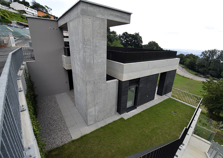 La casa, ad uso residenziale primario, edificata in via San Martino, nella zona collinare e sul fondo 232 RFD fa parte di un progetto di 8 abitazioni raggruppate in 3 diversi edifici. La Residenza Anfiteatro è circondato da abitazioni unifamiliari, da vigneti e prati estesi.